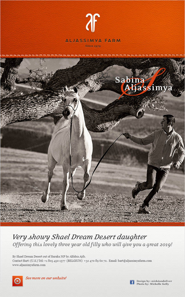 Flamboyant white Shael Dream Desert daughter from Aljassimya Farm