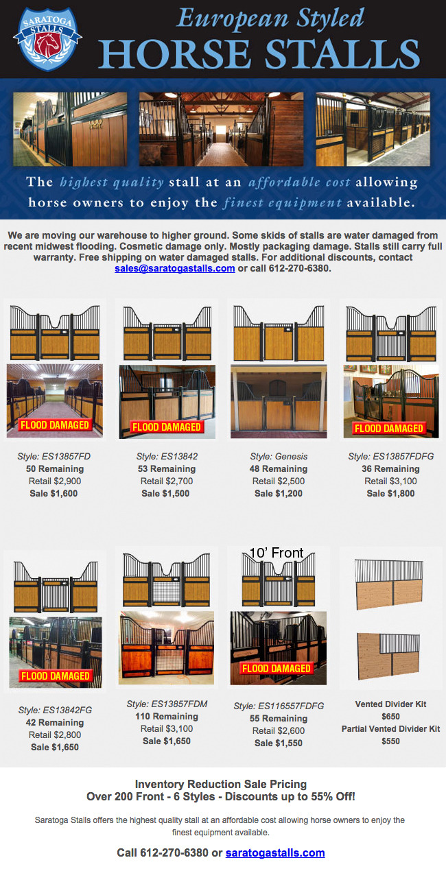 Flood damaged stalls. Warehouse moving sale!