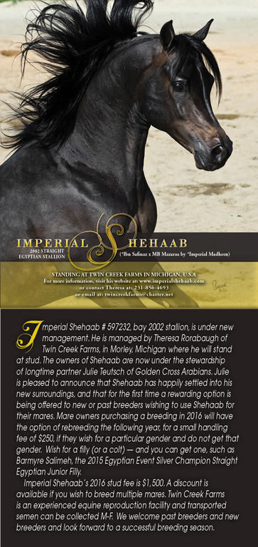 For more information please go to www.imperialshehaab.com or send an email to: twincreekfarms@charter.net