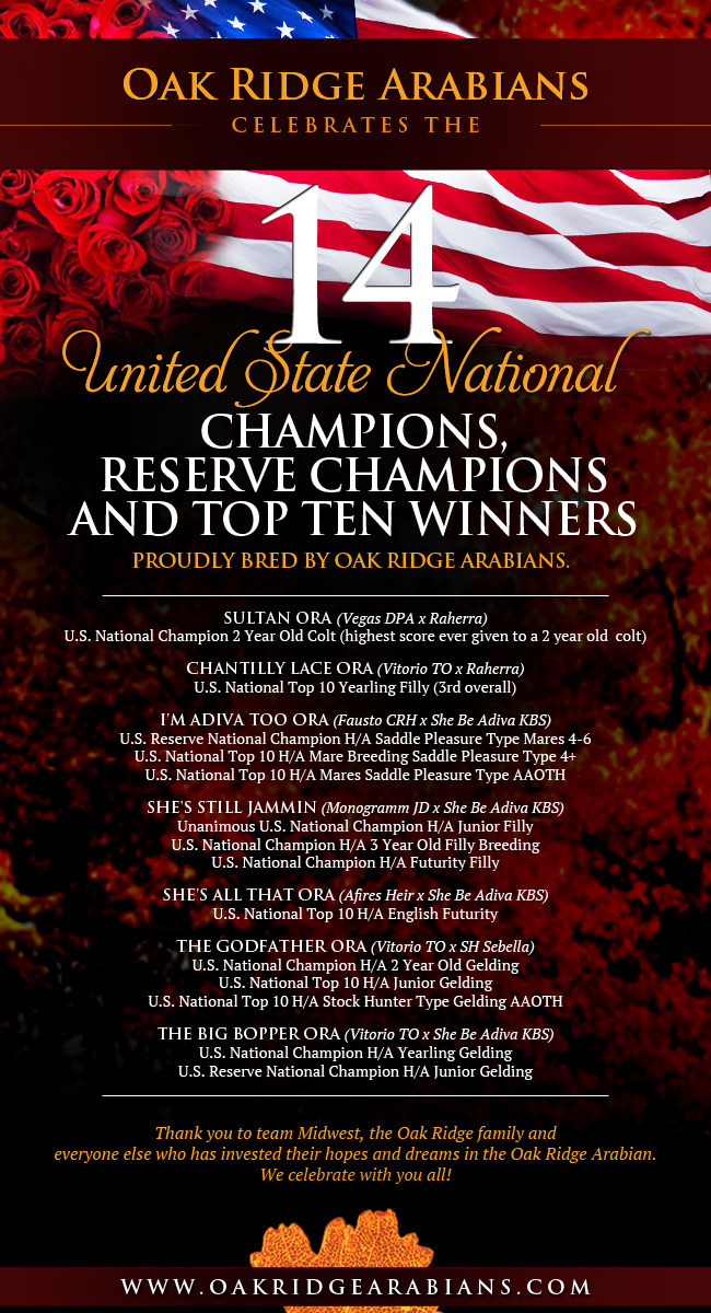 Oak Ridge Arabians Celebrates Fourteen U.S. National Titles!!!